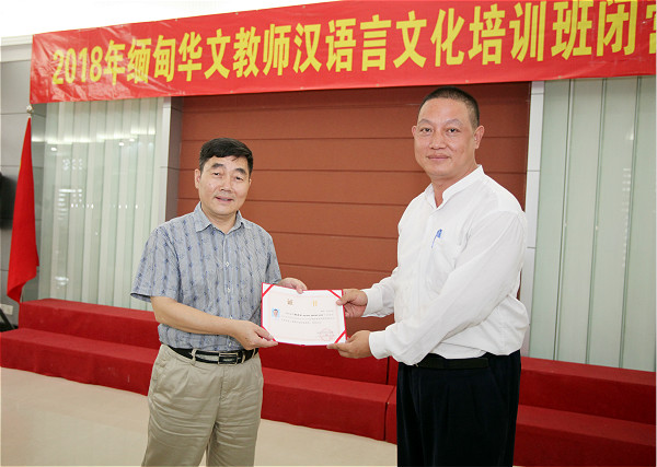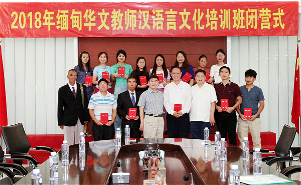 最后,胡培安院长给13位缅甸华文教师颁发结业证书,合影留念。(文:赵鑫愉 图:颜志伟)