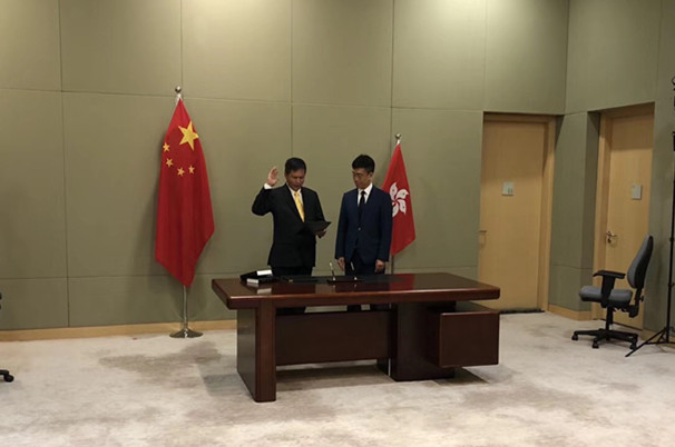 2018年7月1日,我院杰出校友、香港工会联合会副会长、香港建造业总工会理事长周联侨获香港特区行政长官委任为“太平绅士”,并进行就职宣誓。